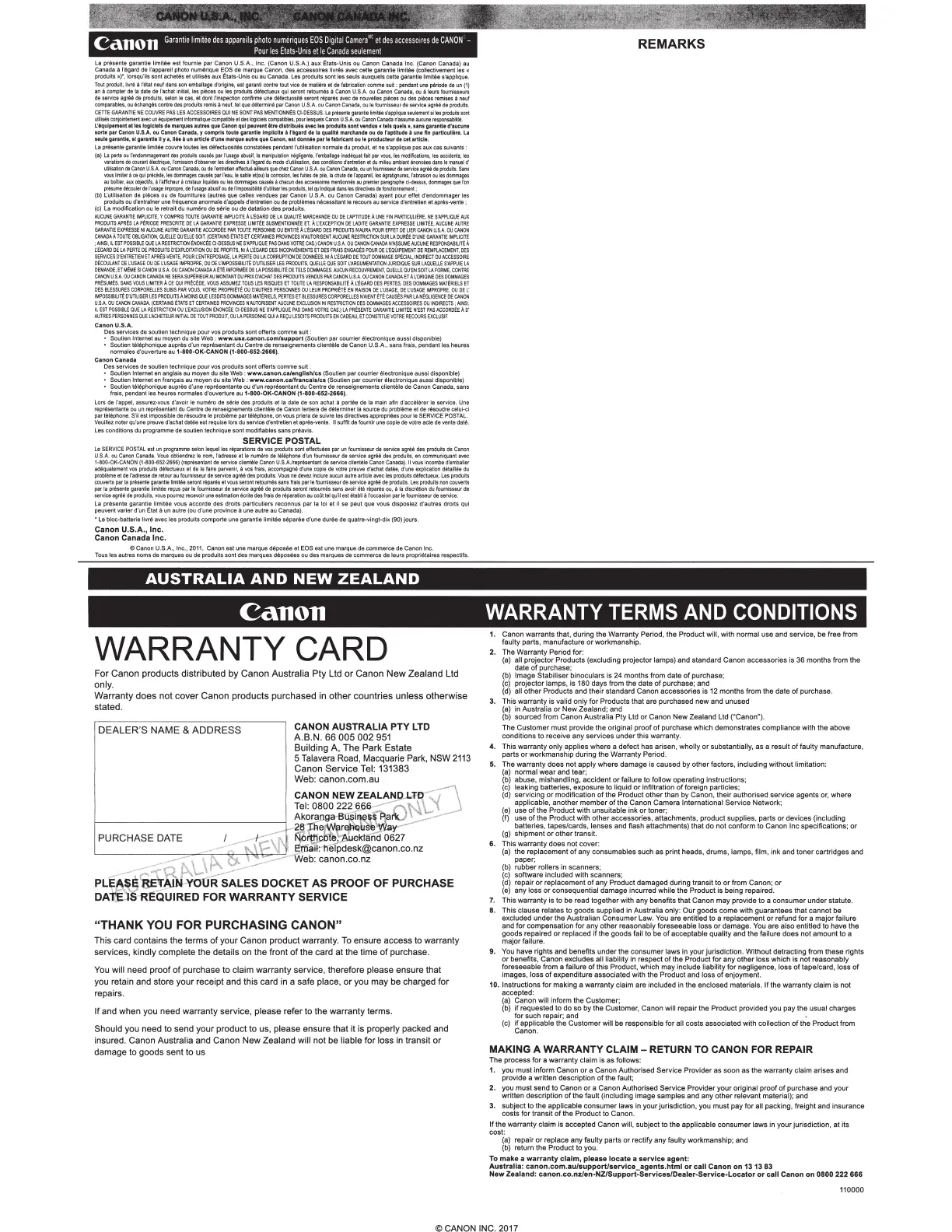 a Canon Authorised Service Provider as soon as the warranty claim arises and