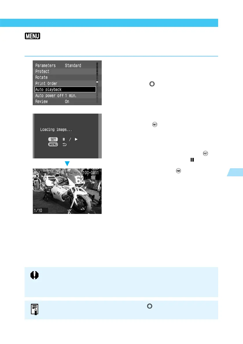 ● During auto playback, the Auto power off function (→29, 120) does not operate.