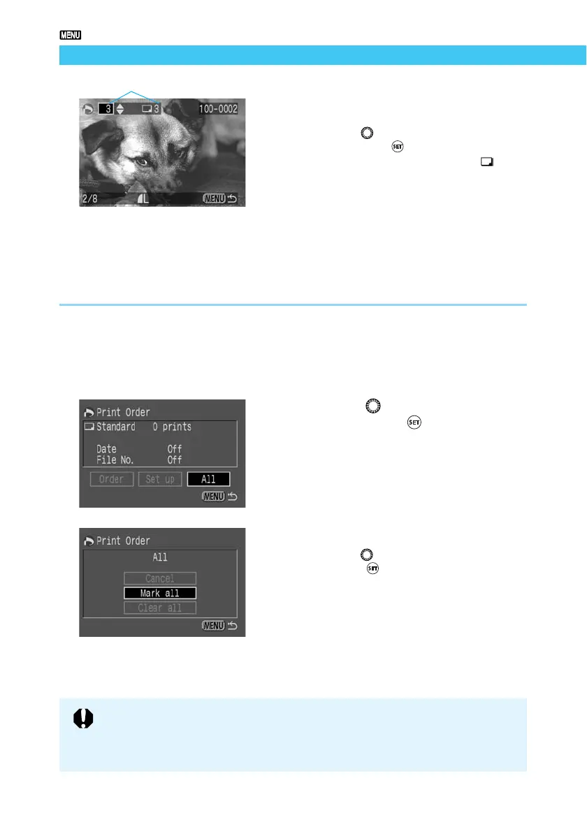 printed. To specify quantities, use the Selecting a Single Image method. (→107)