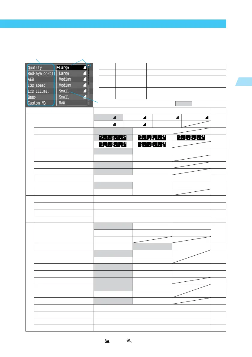 Resets all Custom Functions to the default settings. 121