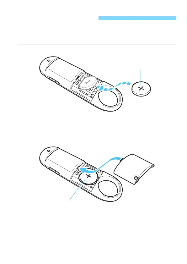 Canon BR-E1 - Replacing the Battery; Use one lithium button cell battery CR2032.; Make sure to insert the battery with the positive (+) side face up.