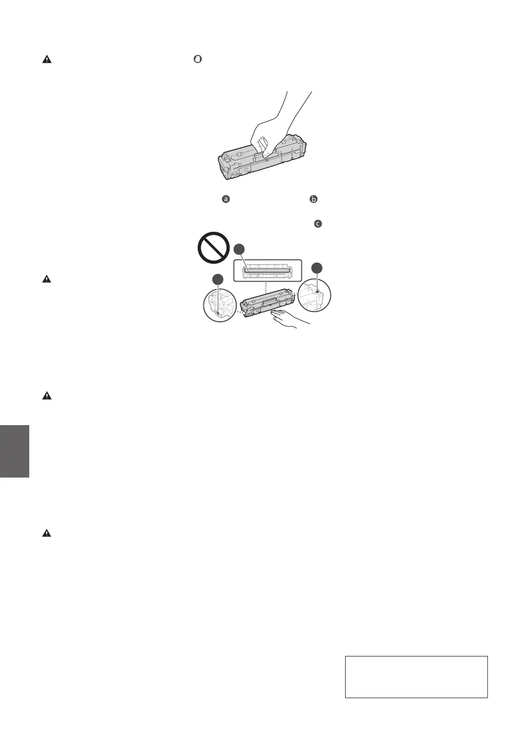 Tenez toujours la cartouche de toner par sa