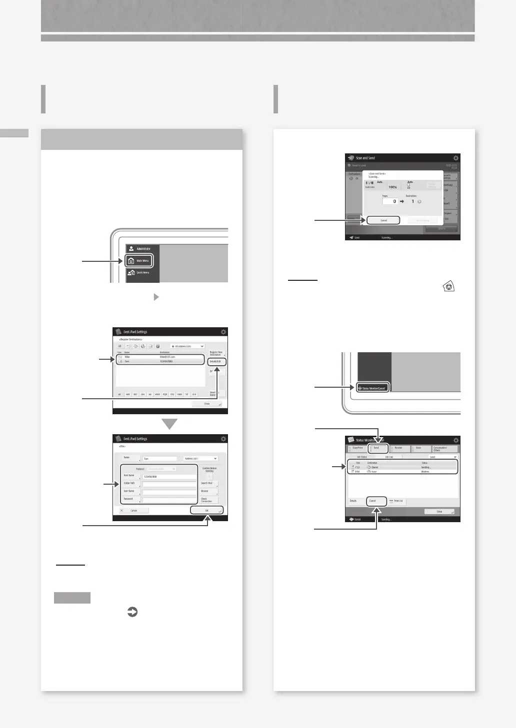 If You Cannot Send Documents to a Server Using [Scan and Send] / Stopping Scanning/Faxing