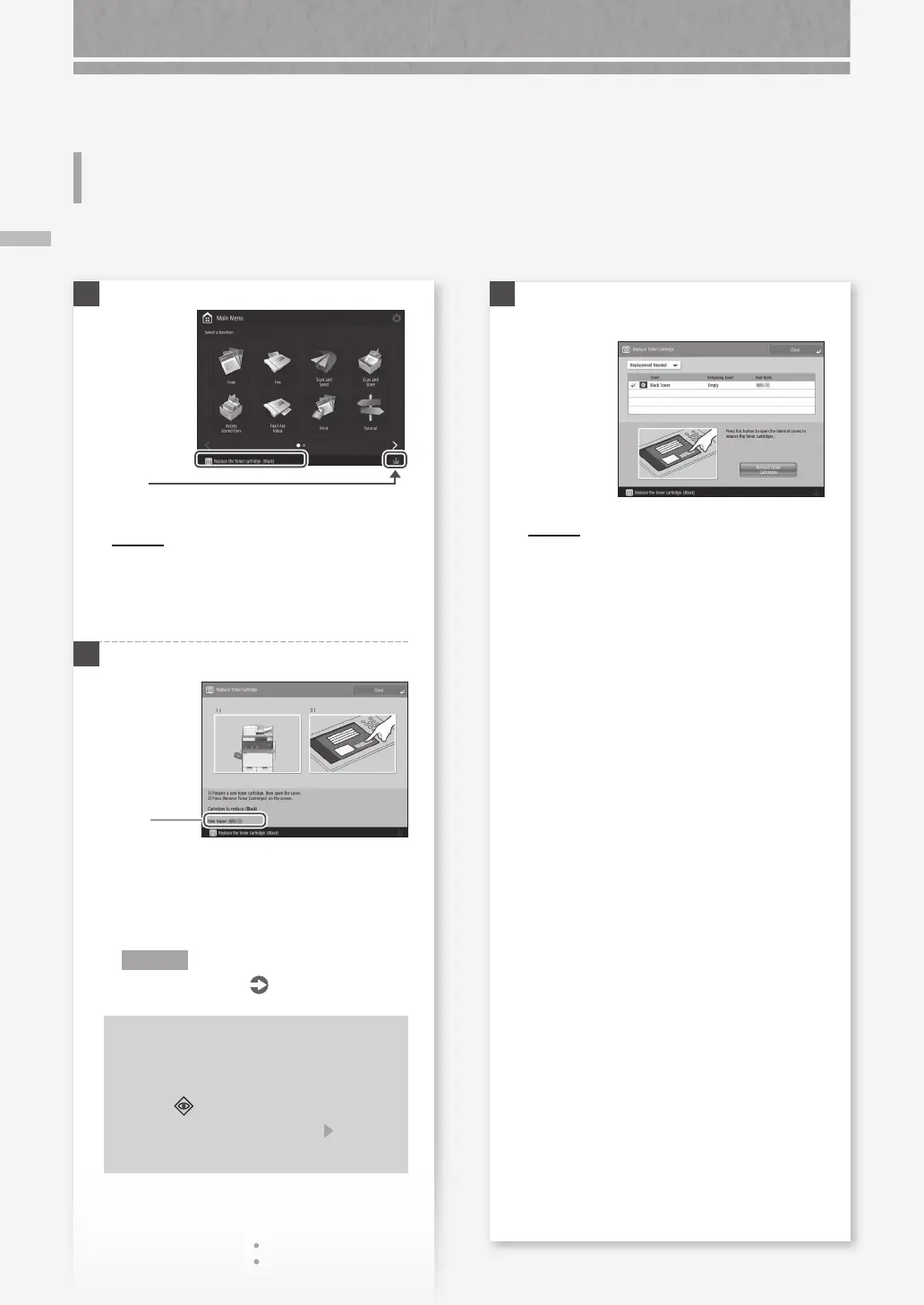 When a consumable used in the machine is nearing the time for replacement, a screen prompting you to replace it appears on the