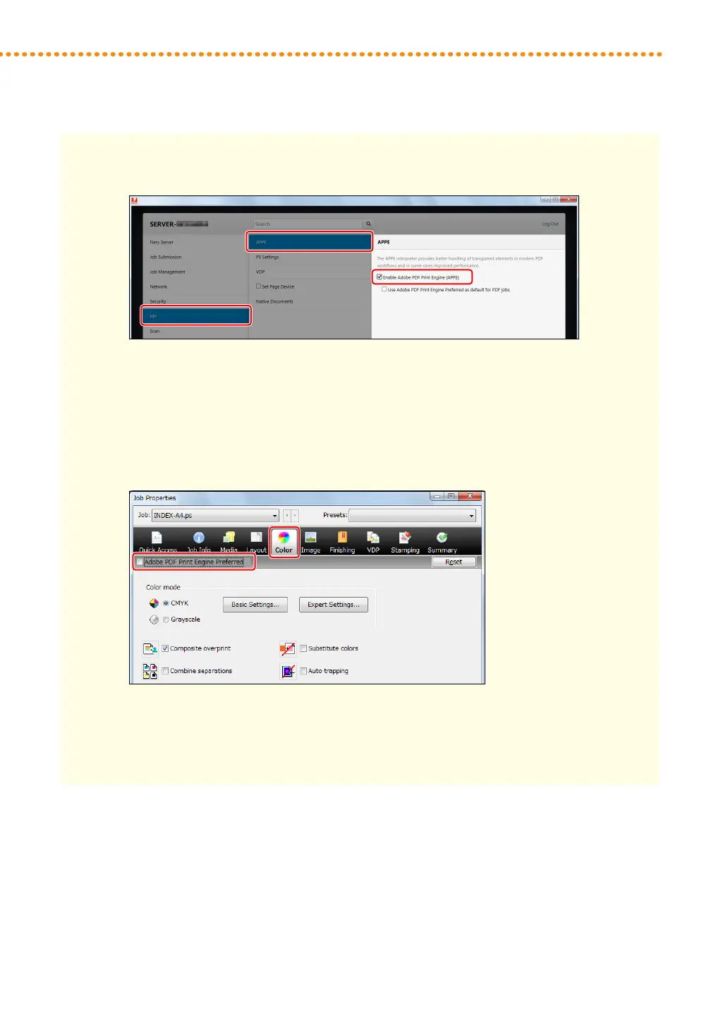 2 Click [RIP] → [APPE], and select the check box for <Enable Adobe PDF Print Engine (APPE)>�