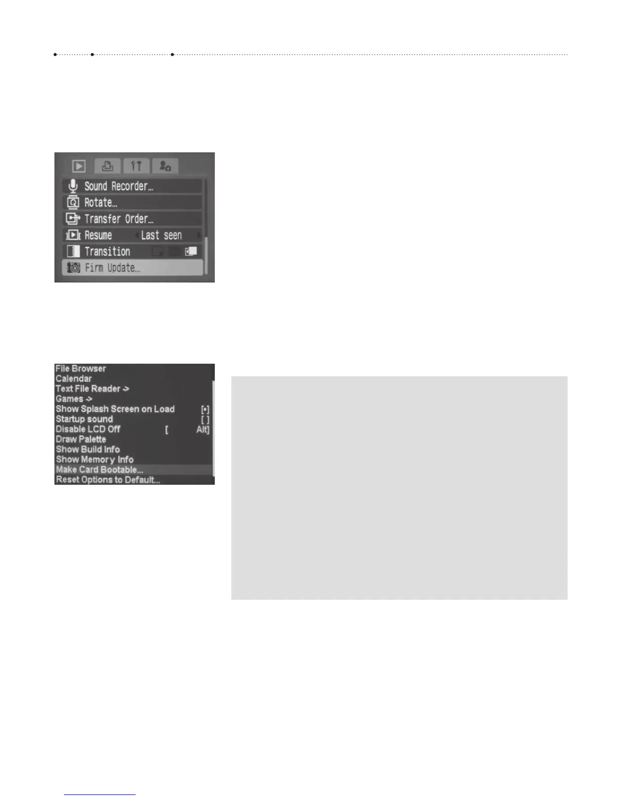 > Make Card Bootable… and press FUNC/SET.
