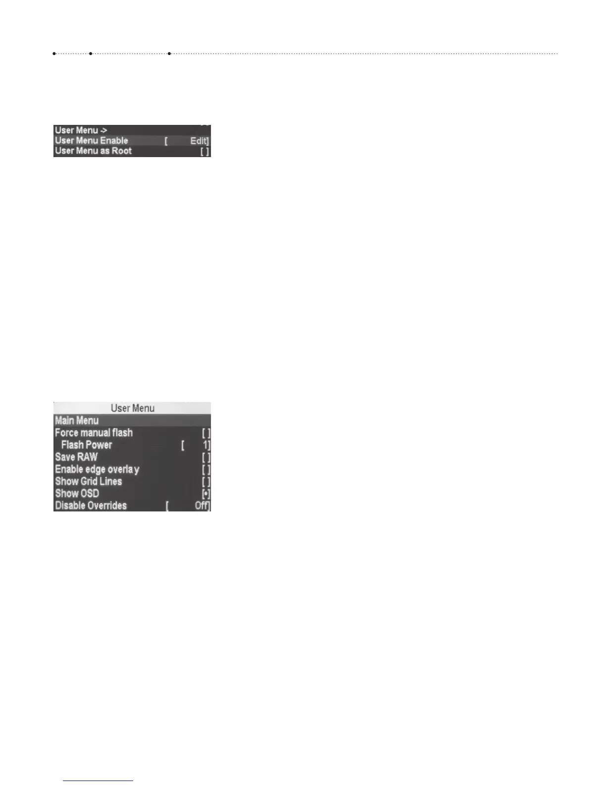 leave all menus. Alternatively, you can set User Menu Enable to On and