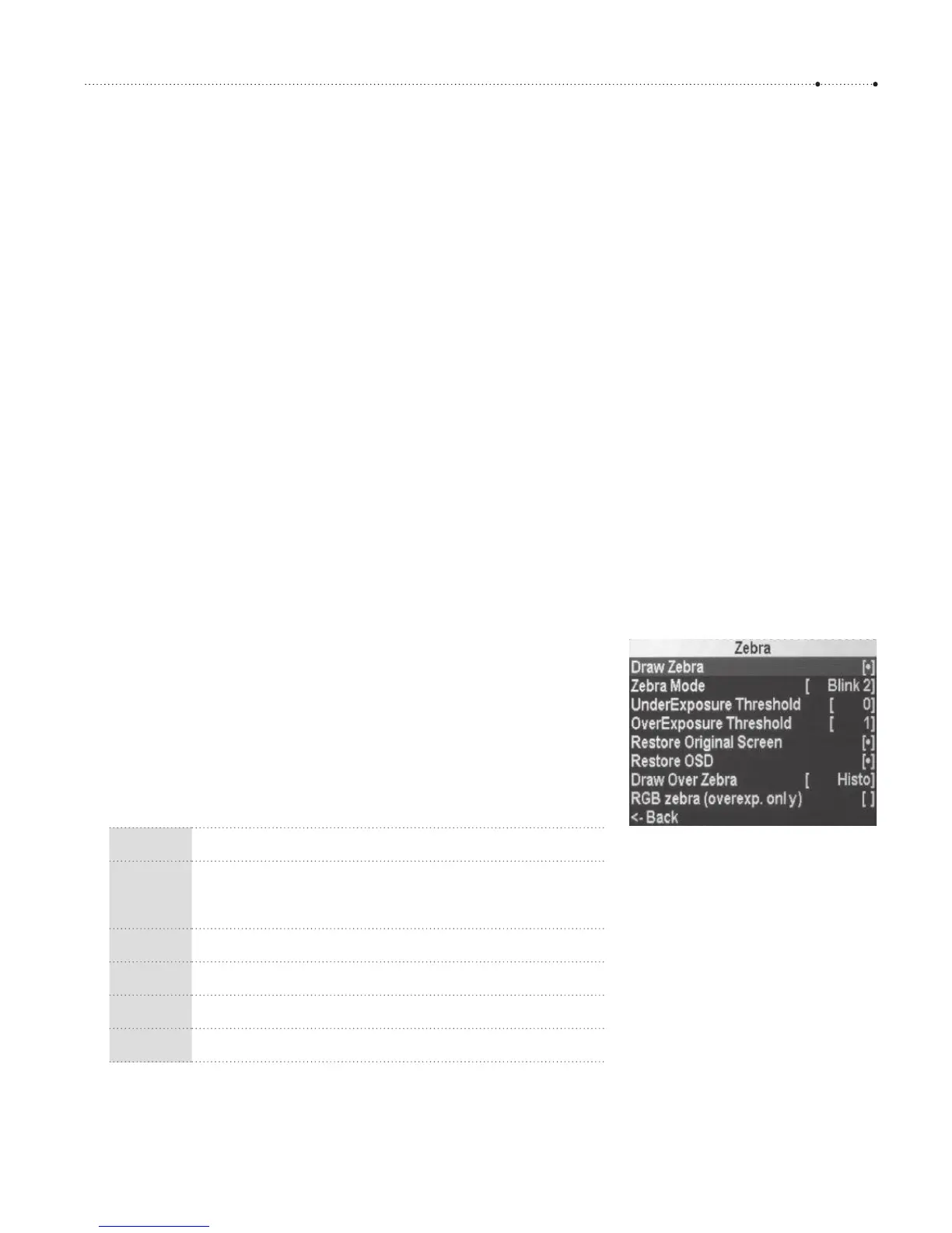 Zebra Mode determines how the overexposed or underexposed areas