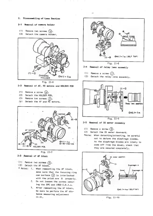 Canon Canovision8 E50E - Disassembling of Lens Section; Removal of 1 G Meter Assembly; Removal of AF Block; Removal of AF C.B.A, and Camera Holder