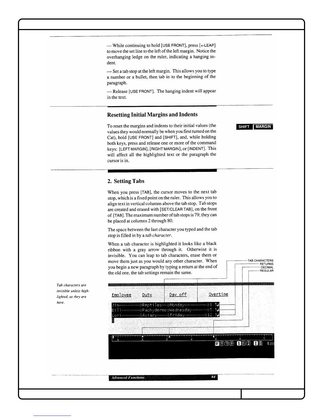 Canon Cat - Paragraph Commands: UNDO and Appearance; Setting Tabs