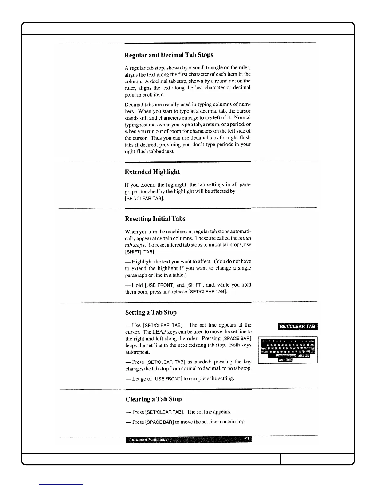 Canon Cat - Paragraph Commands: UNDO and Appearance; Setting and Clearing Tab Stops