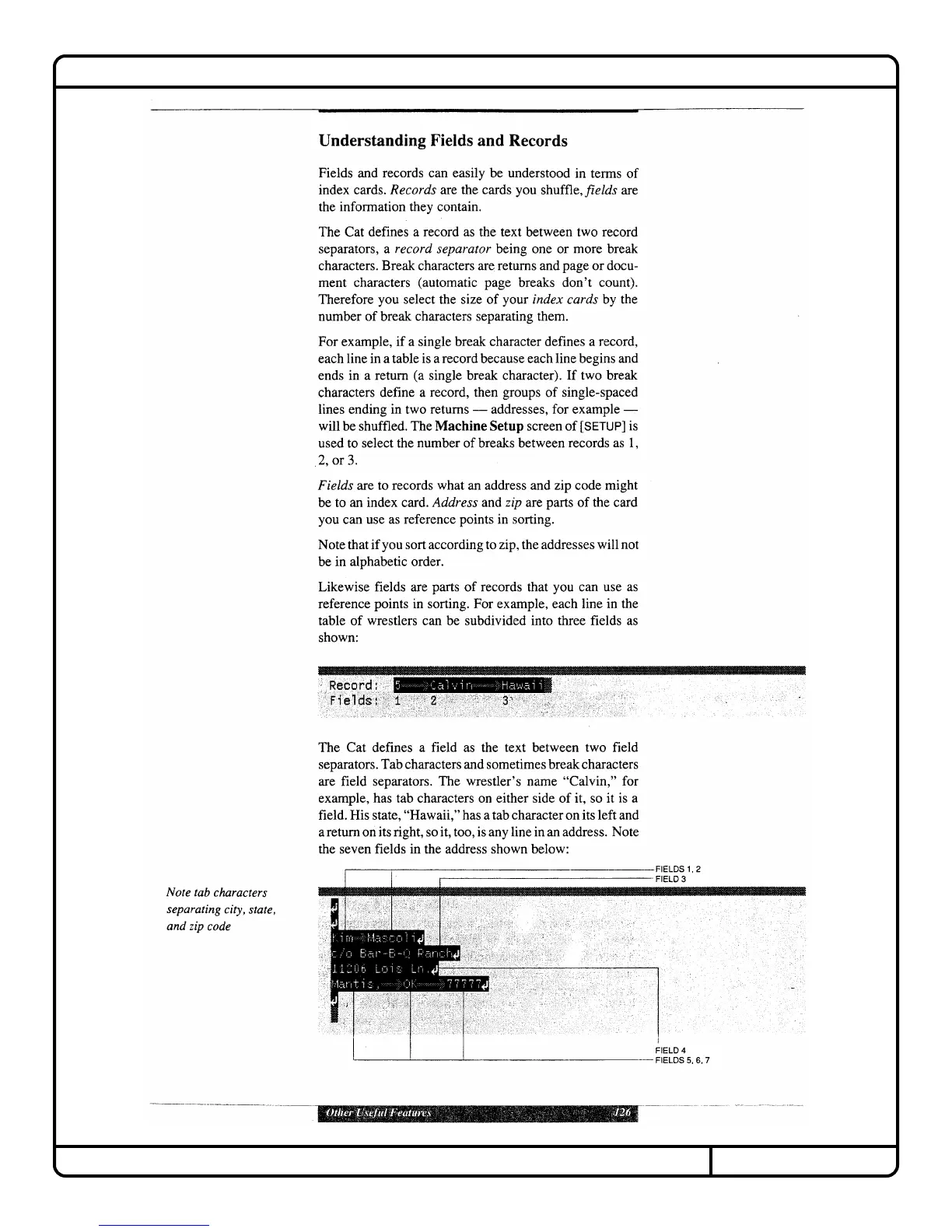 Canon Cat - Understanding Fields and Records; Extended Highlight for Field Identification