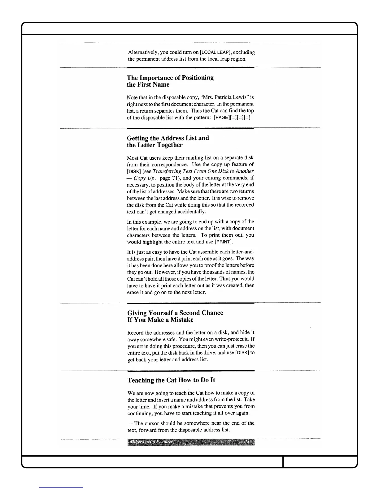 Canon Cat - Creating and Printing Form Letters; Mistake Correction in Mail Merge; Teaching the Cat Mail Merge Steps