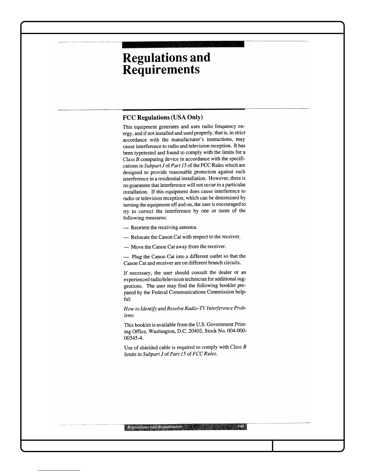 Canon Cat - Regulations and Requirements; FCC Regulations (USA)