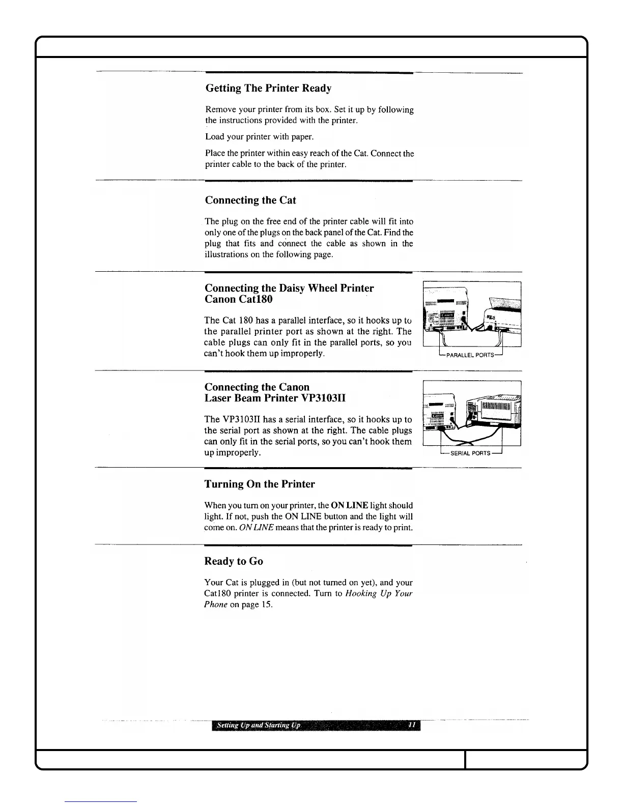 Canon Cat - Getting the Printer Ready; Connecting Peripherals to the Cat; Printer Readiness Checks