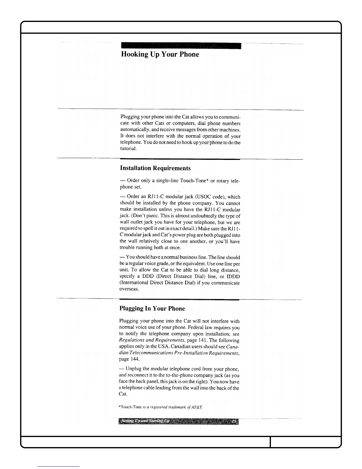 Canon Cat - Hooking Up Your Phone; Phone Installation Requirements; Plugging In Your Phone