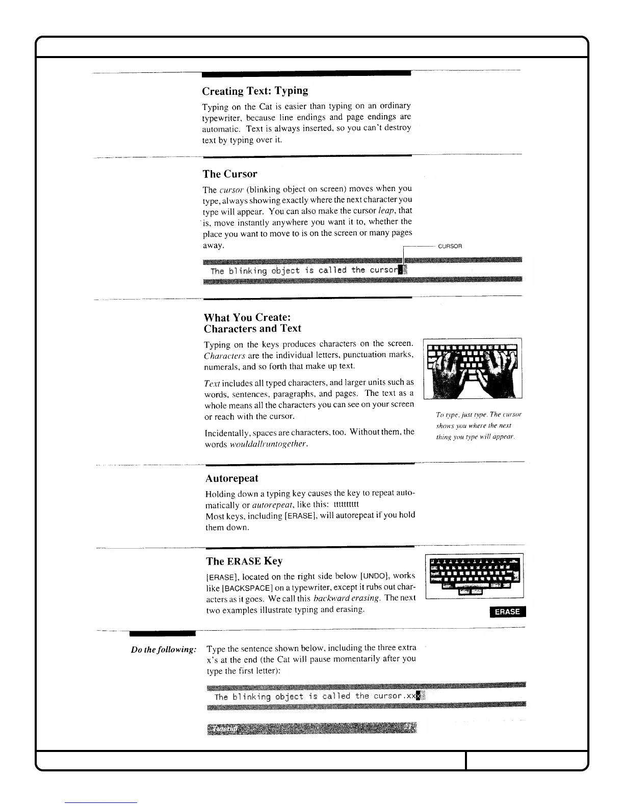 Canon Cat - Creating Text: Typing; The Cursor and Text Entry; Using the ERASE Key