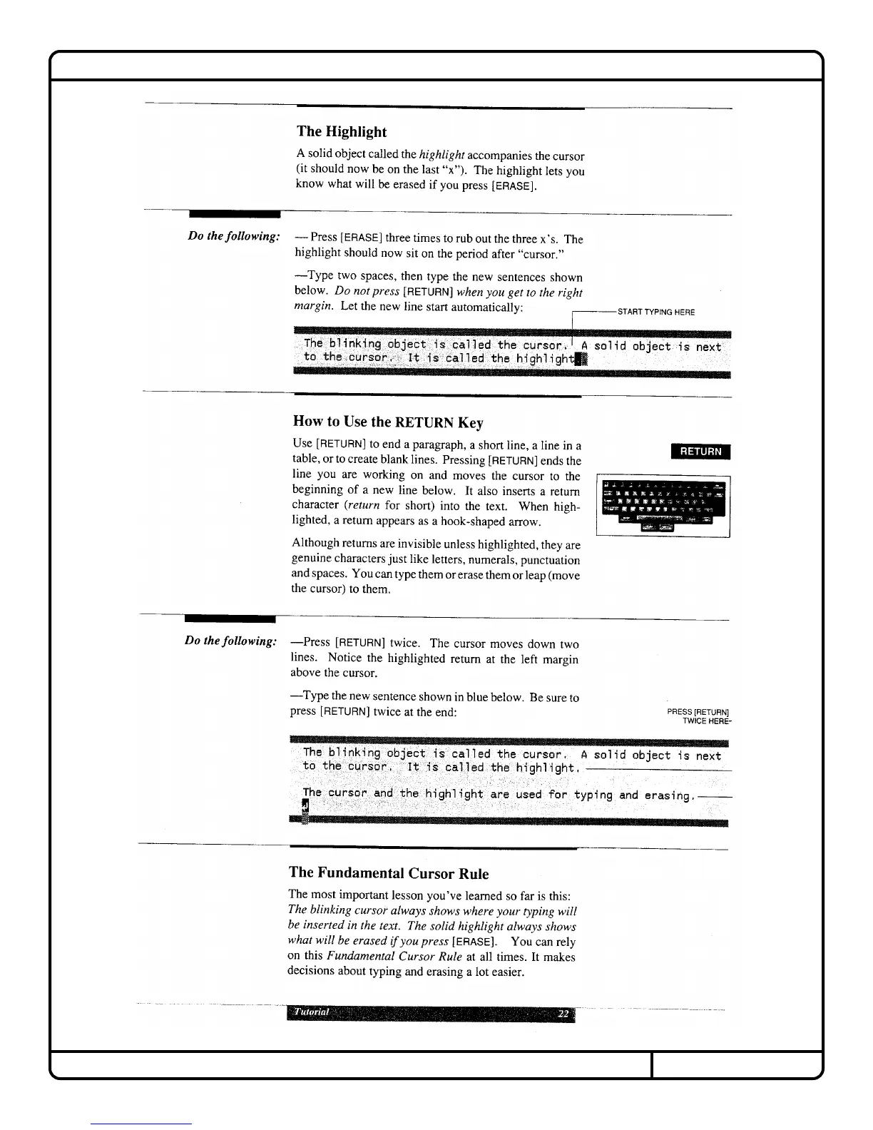 Canon Cat - Text Manipulation: Highlighting; Using the RETURN Key; Fundamental Cursor Rules