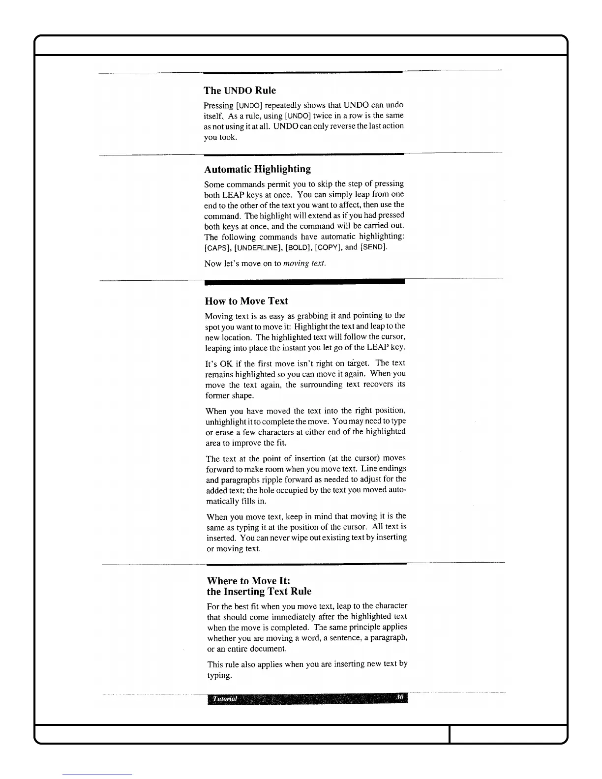 Canon Cat - Text Editing Commands: UNDO and Moving Text; The UNDO Rule; How to Move Text
