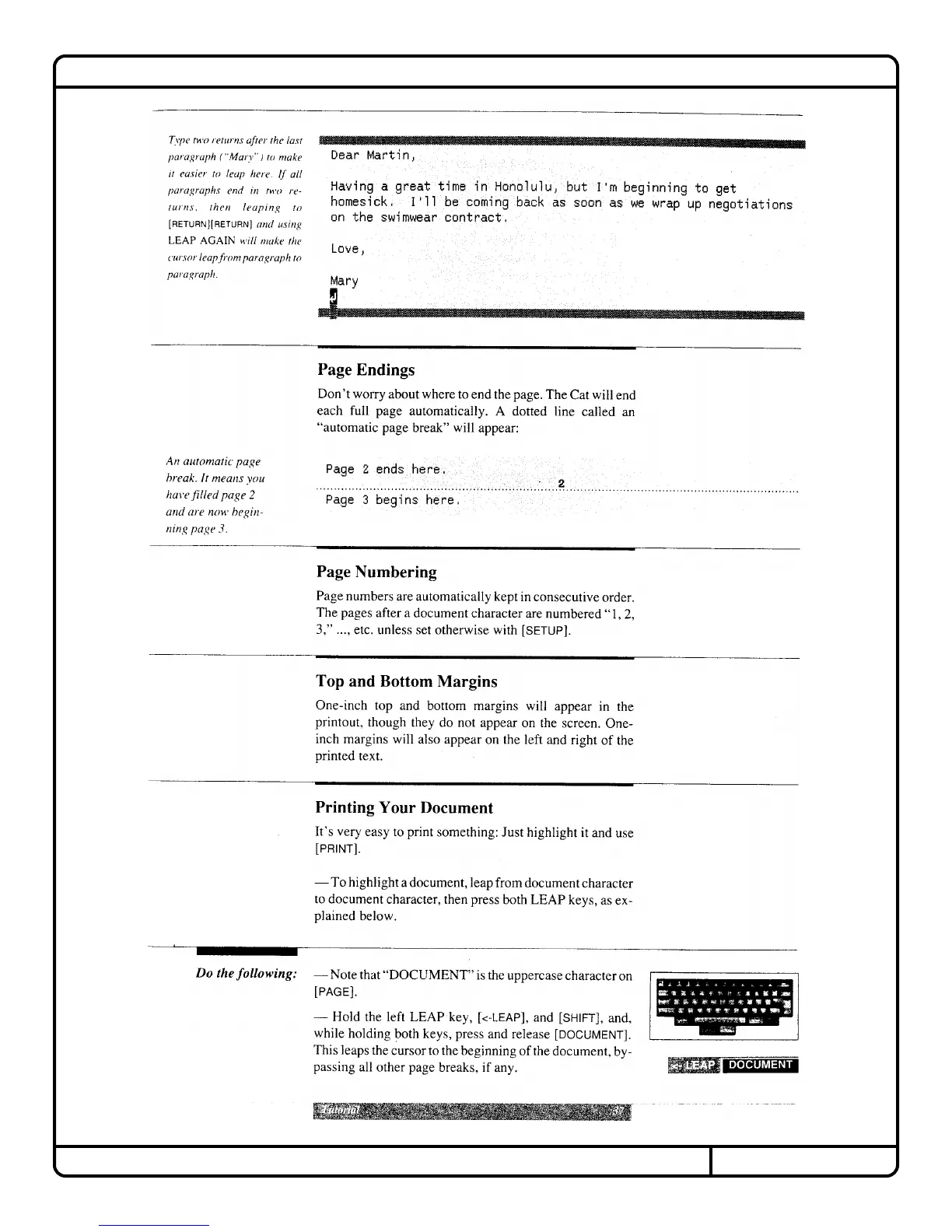 Canon Cat - Document Finalization; Page Numbering and Endings; Printing Your Document