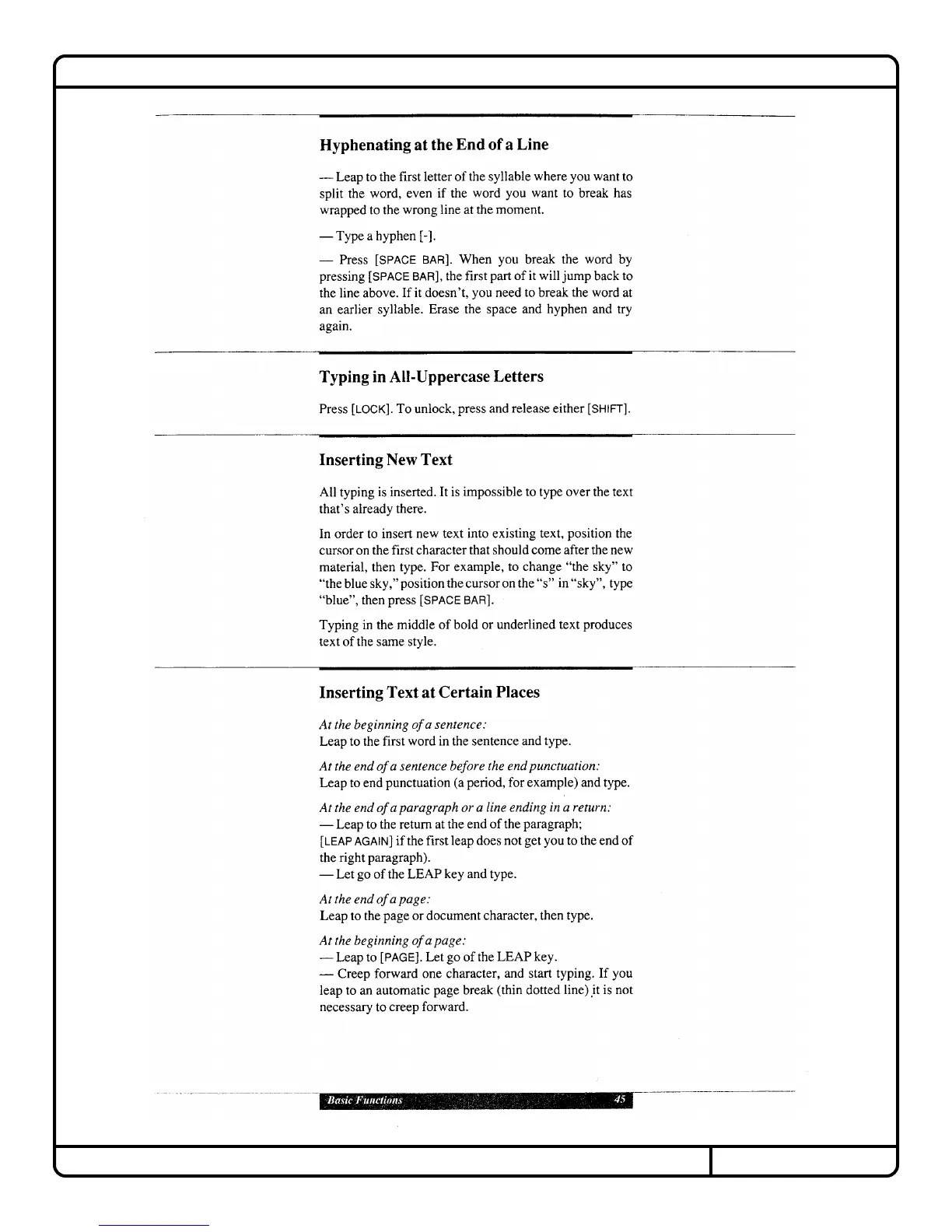 Canon Cat - Typing Techniques; Hyphenating Lines; Inserting New Text