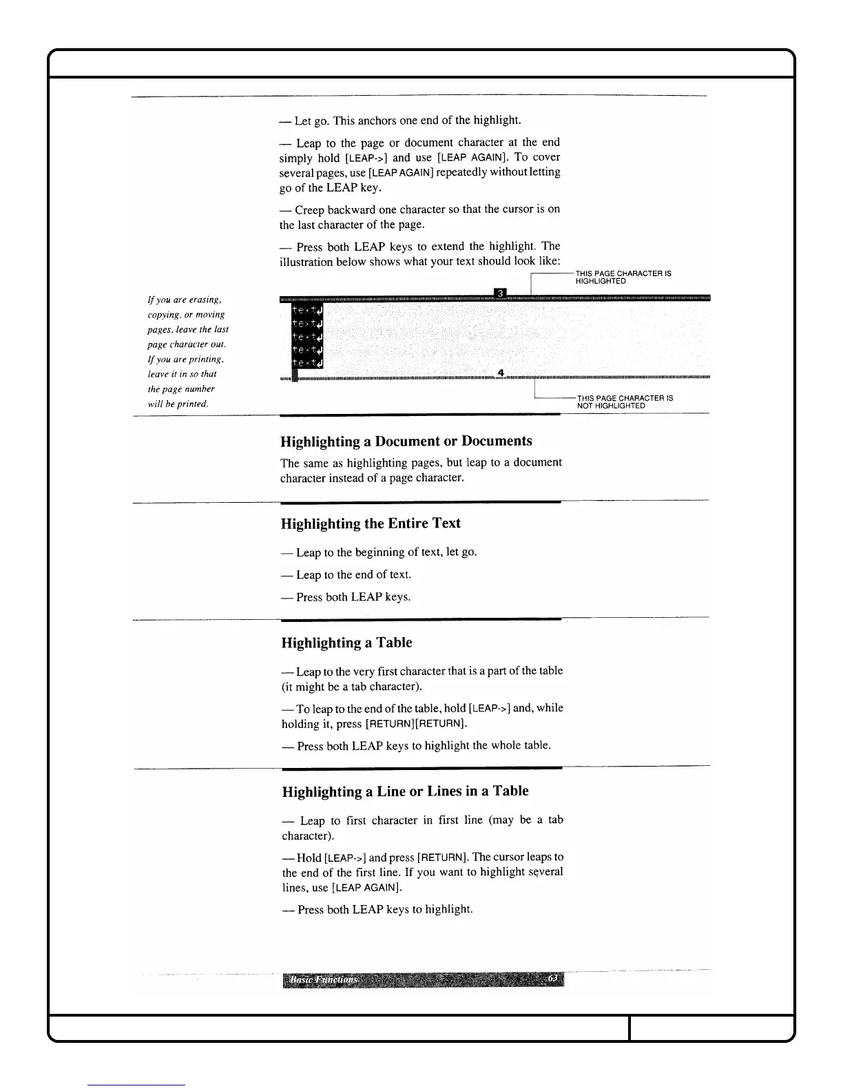 Canon Cat - Highlighting Text Functions; Highlighting Documents and Tables; Highlighting Entire Text