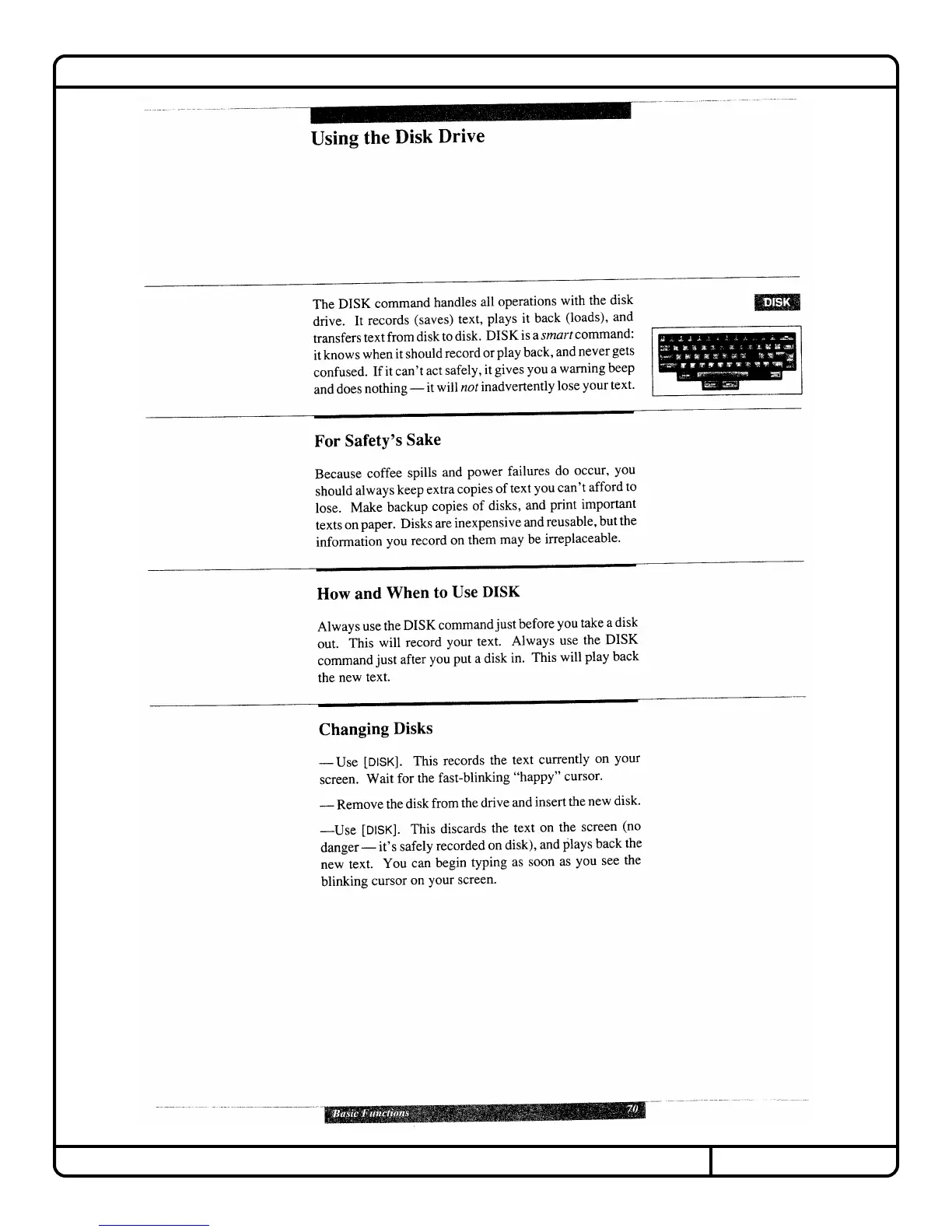 Canon Cat - Disk Drive Operations; Disk Safety Precautions; Using the DISK Command