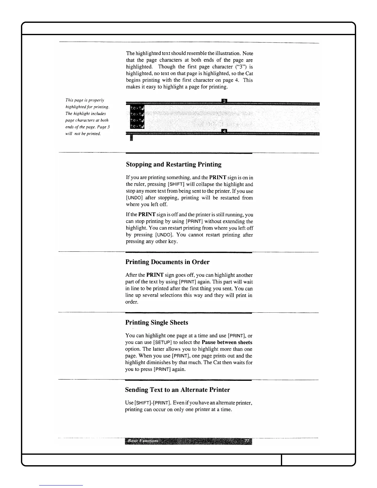 Canon Cat - Printing Your Document; Stopping and Restarting Printing; Printing Order and Sheets
