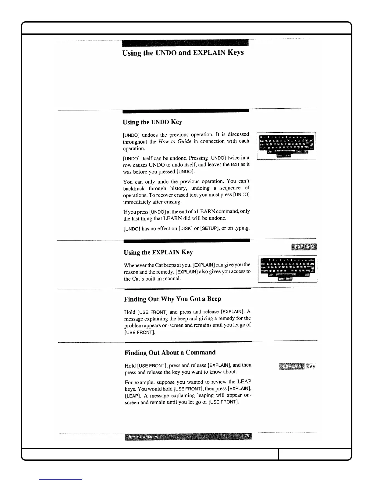 Canon Cat - Using UNDO and EXPLAIN Keys; UNDO Key Functions; EXPLAIN Key Functions