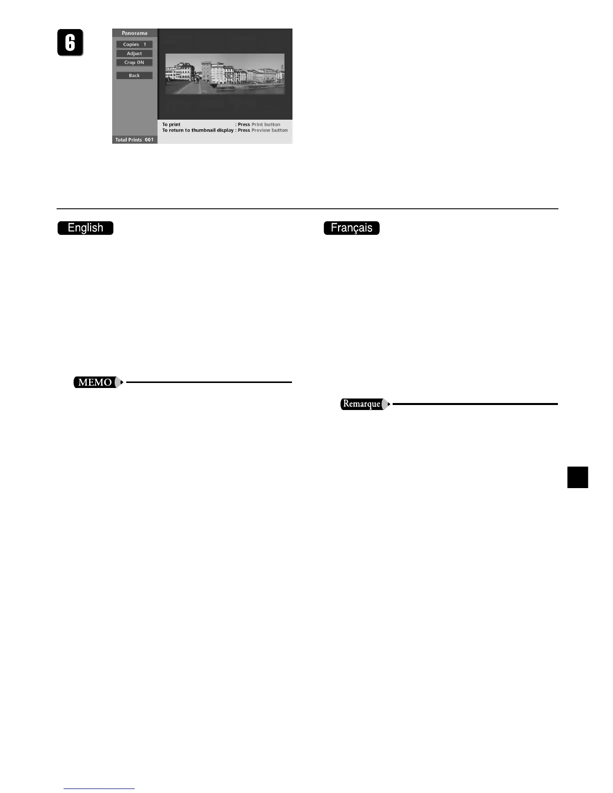 l’impression panorama, choisissez le bouton [Back]