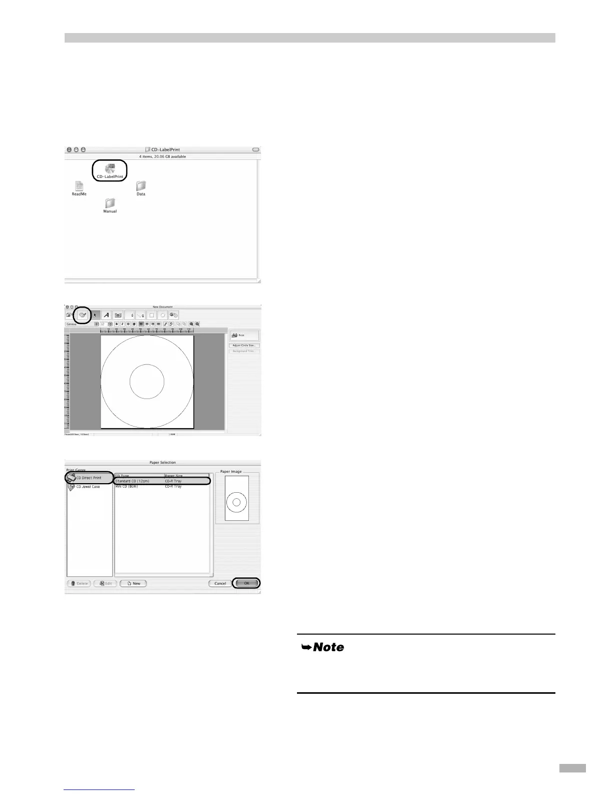 This section explains how to use CD-LabelPrint to print directly on 12 cm CD-Rs and DVD-Rs. Refer to the