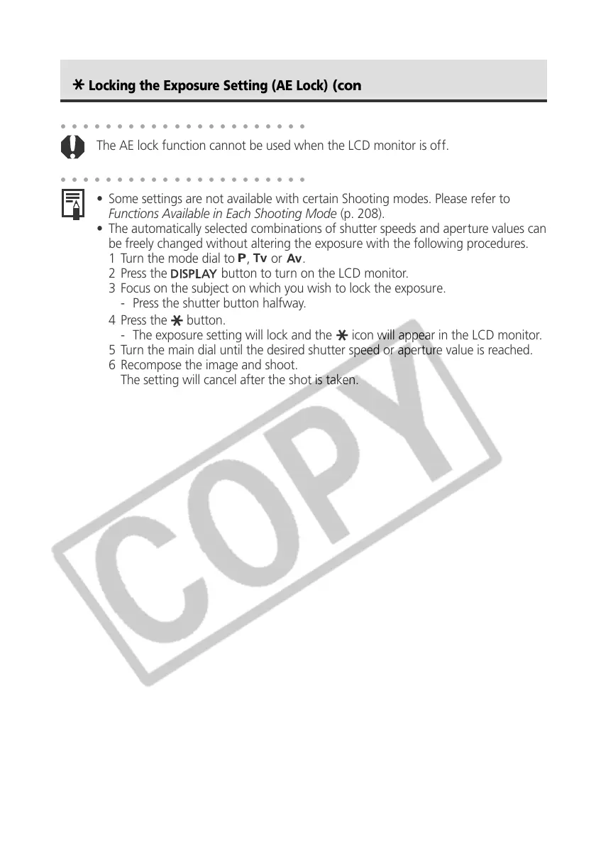 The AE lock function cannot be used when the LCD monitor is off.