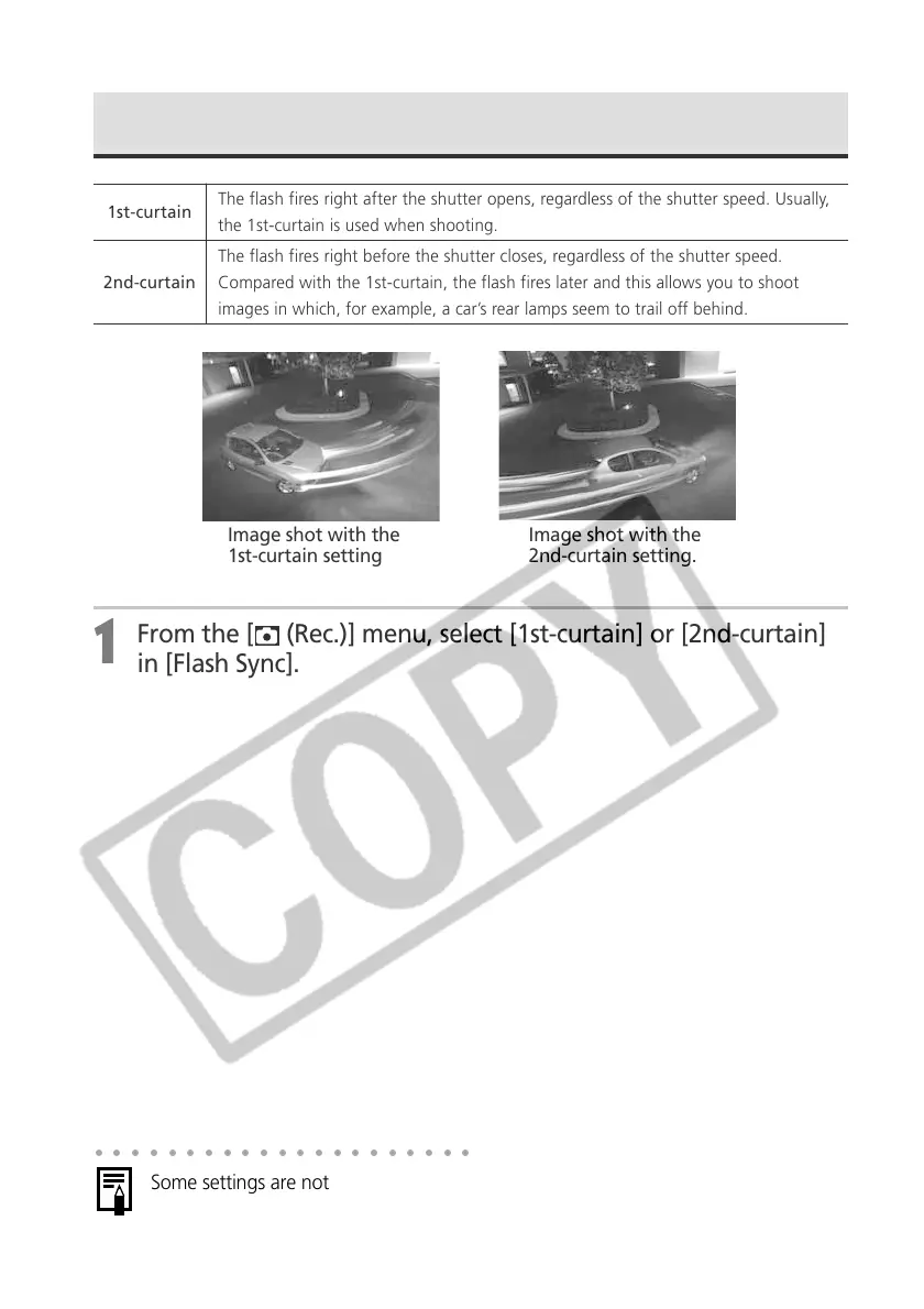 From the [ (Rec.)] menu, select [1st-curtain] or [2nd-curtain]