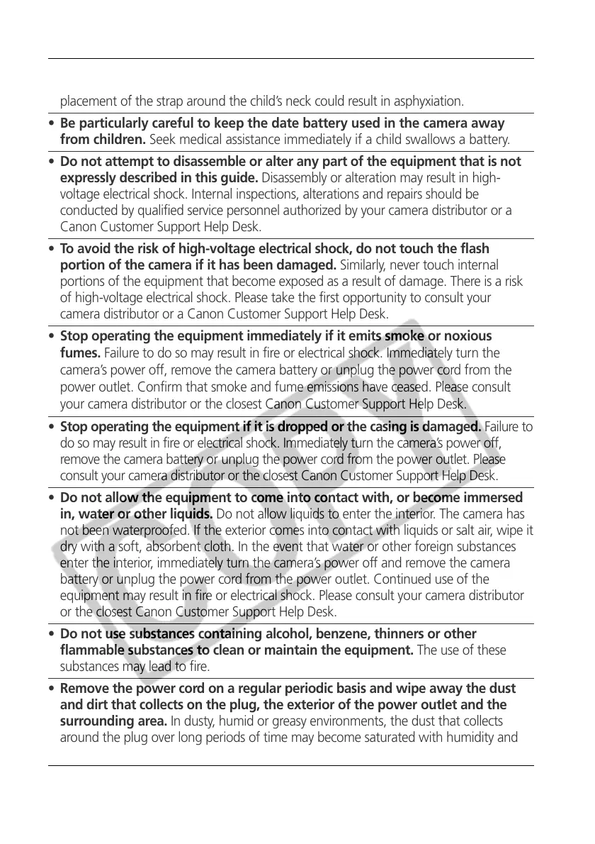 do so may result in fire or electrical shock. Immediately turn the camera’s power off,