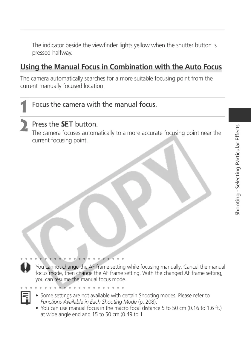 • You can use manual focus in the macro focal distance 5 to 50 cm (0.16 to 1.6 ft.)