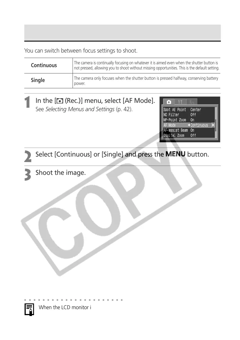 When the LCD monitor is off, the setting locks in the Single mode.