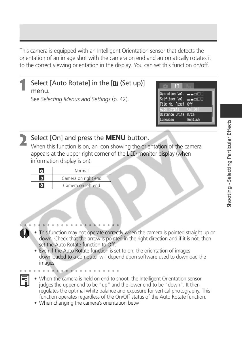 • Even if the Auto Rotate function is set to on, the orientation of images