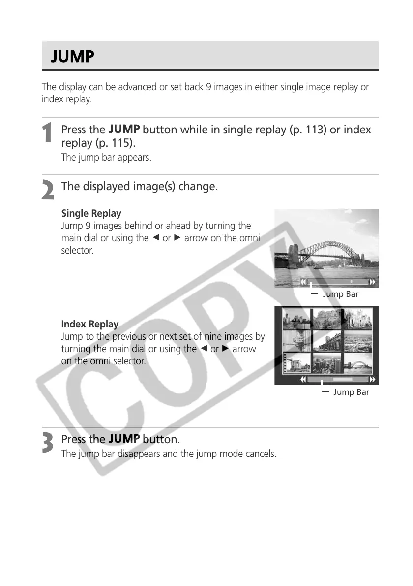 Press the button while in single replay (p. 113) or index