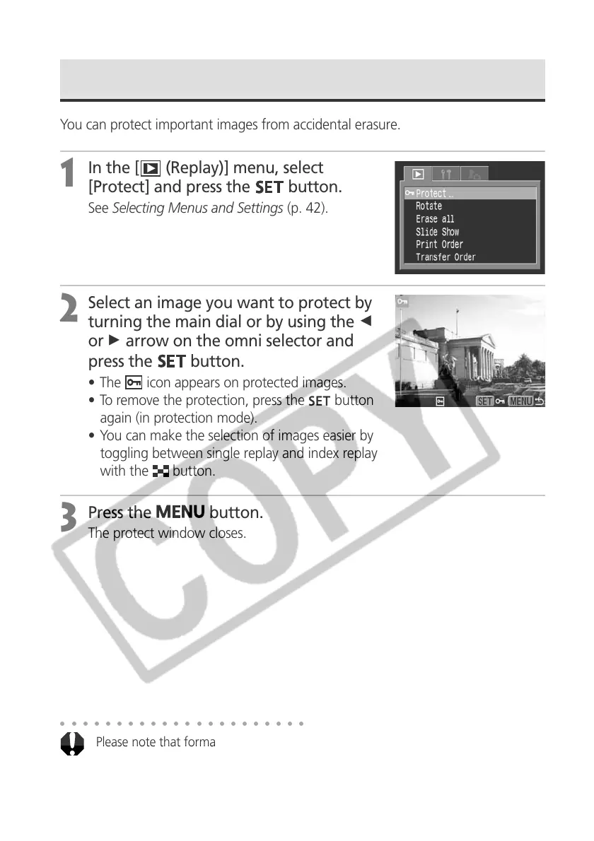 Please note that formatting (initializing) a CF card erases all data, including protected