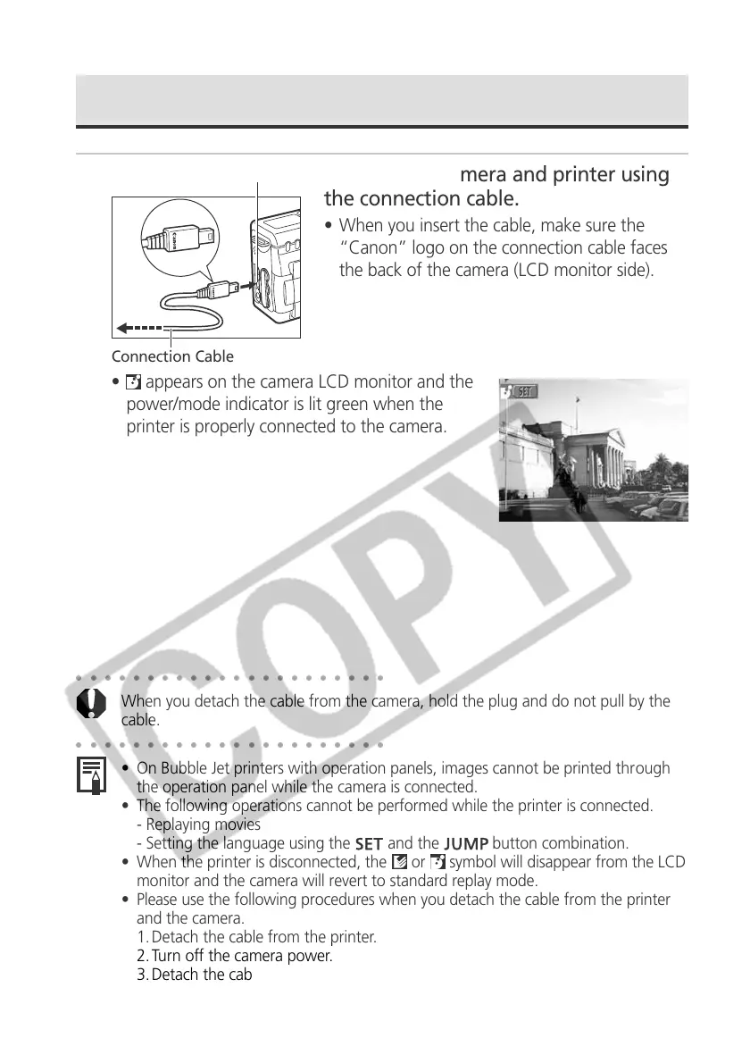When you detach the cable from the camera, hold the plug and do not pull by the