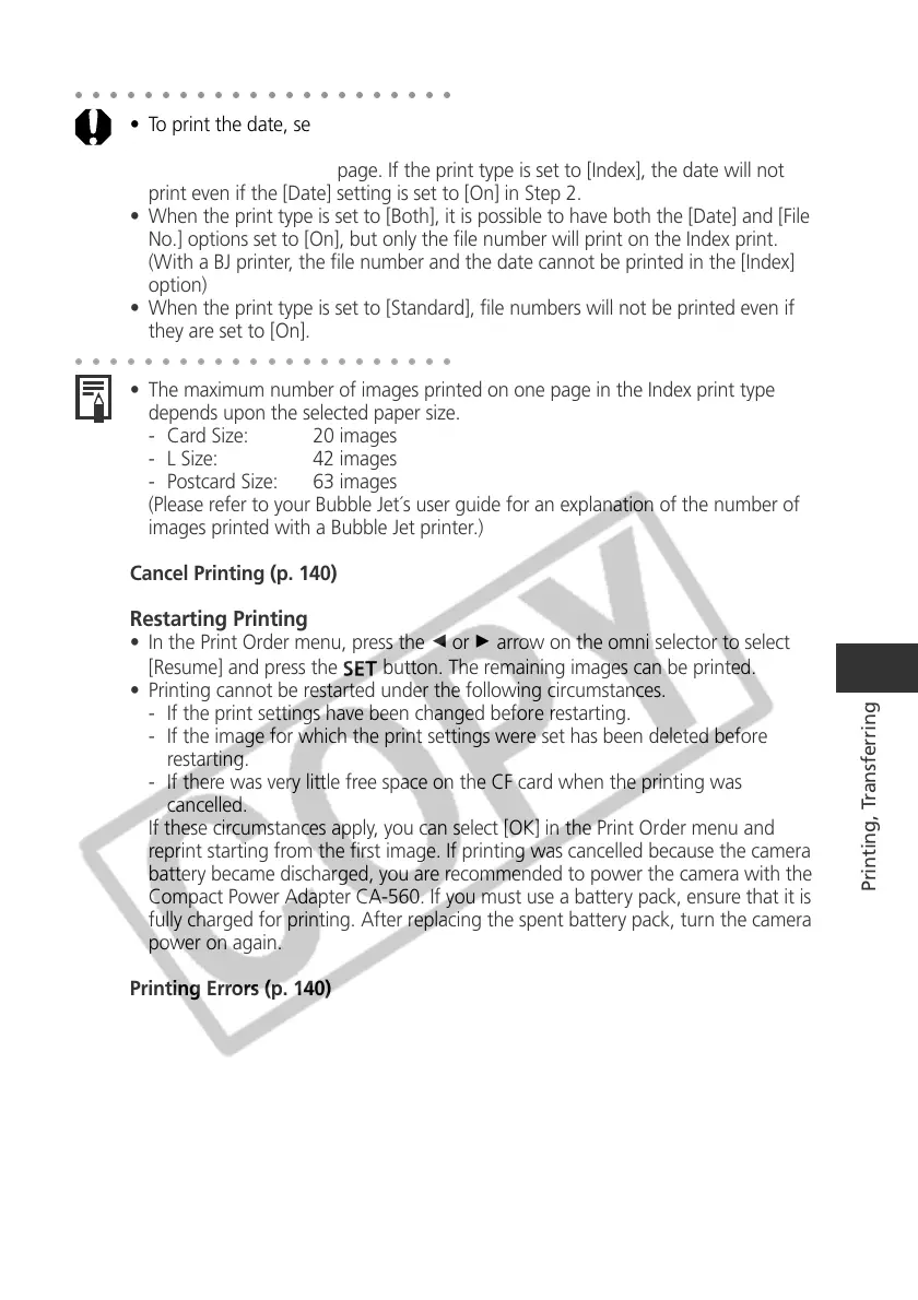 Step 3 on the previous page. If the print type is set to [Index], the date will not
