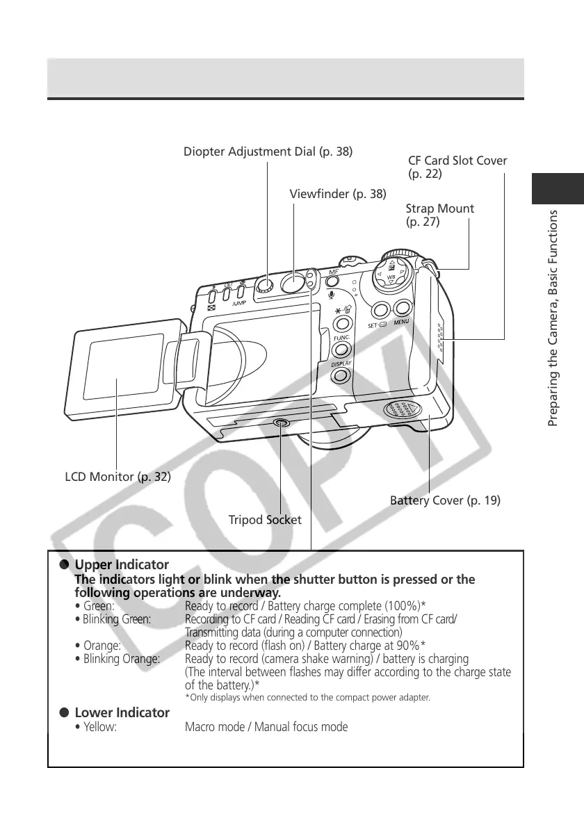 • Blinking Green: Recording to CF card / Reading CF card / Erasing from CF card/