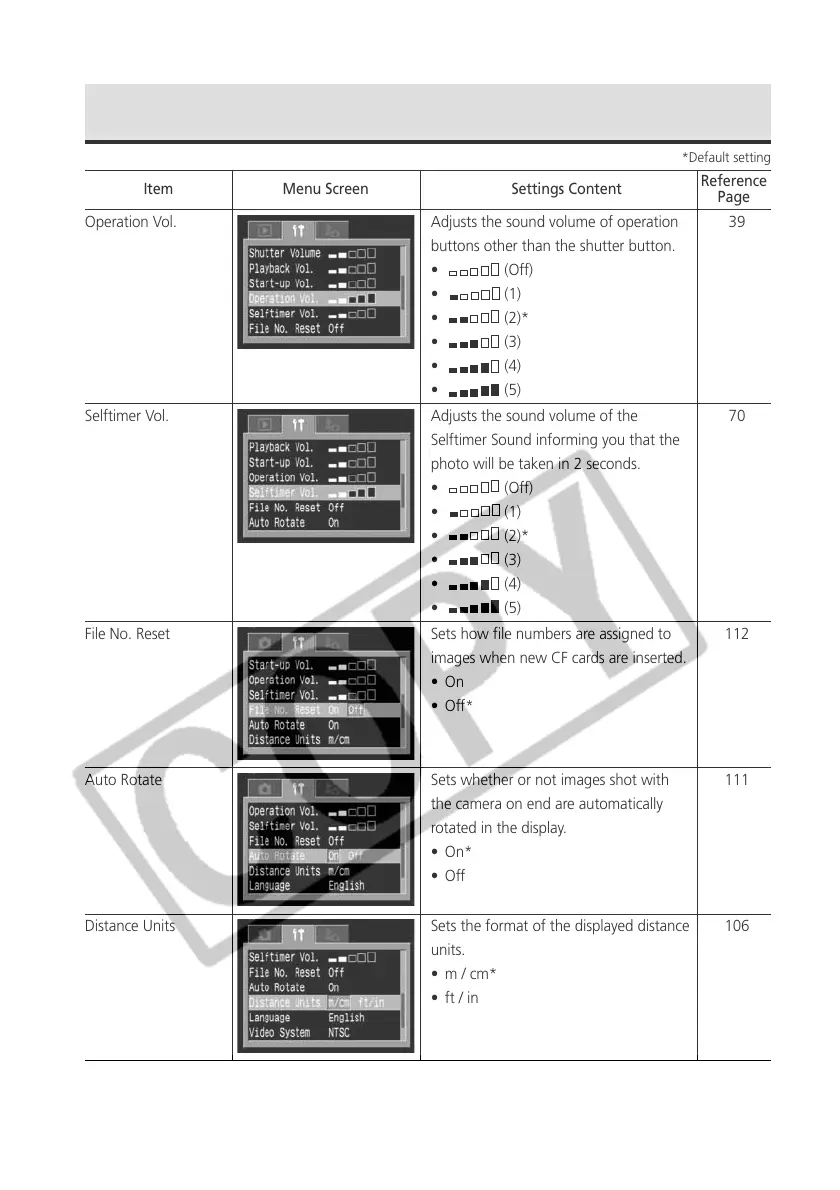 Selftimer Vol. Adjusts the sound volume of the