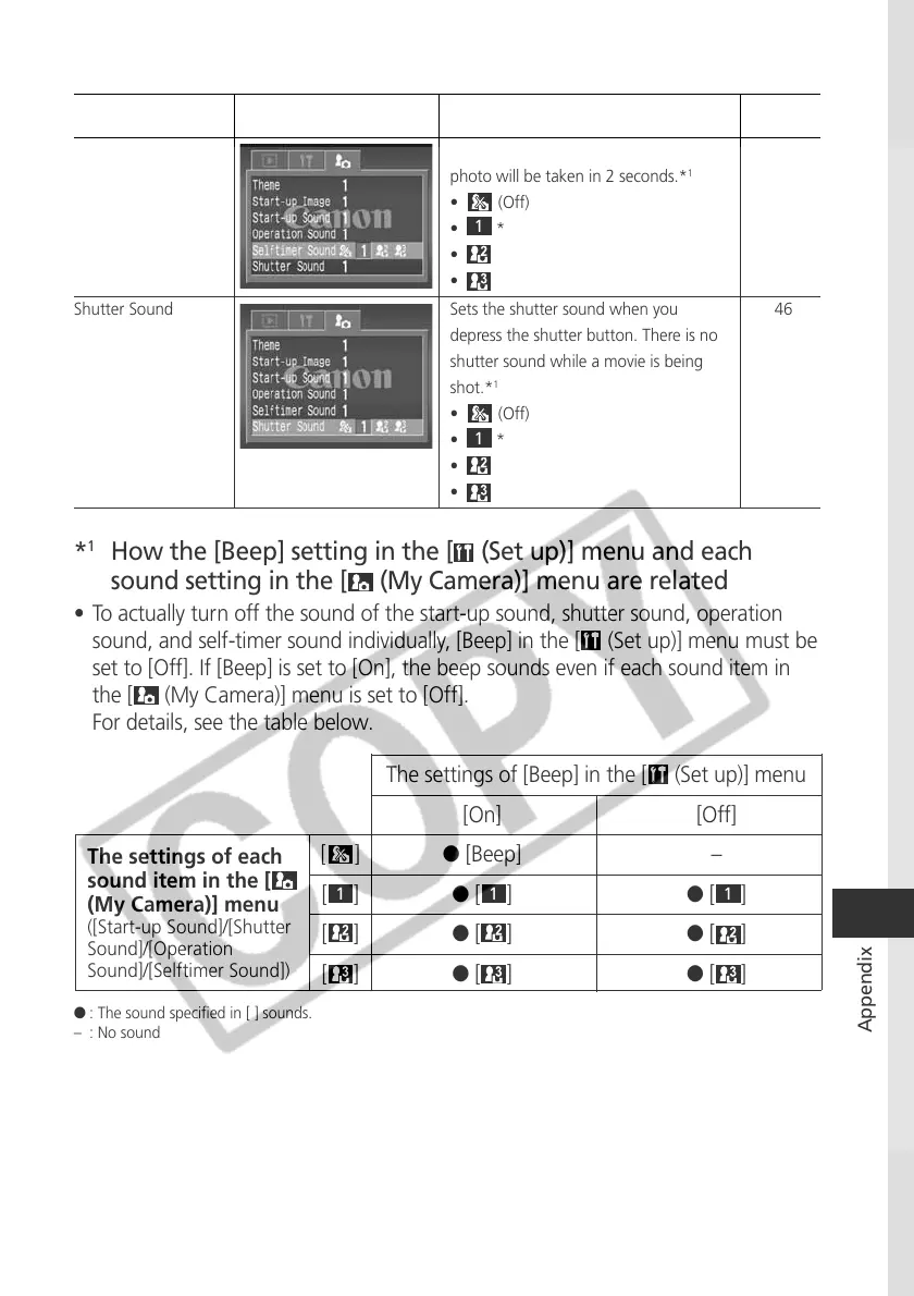 set to [Off]. If [Beep] is set to [On], the beep sounds even if each sound item in