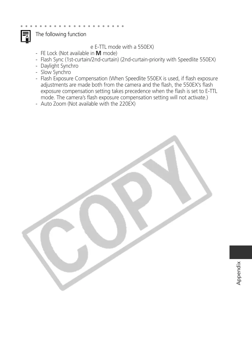 The following functions can be used with a Speedlite 220EX, 380EX, 420EX or