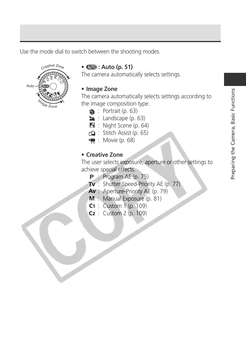 Preparing the Camera, Basic Functions