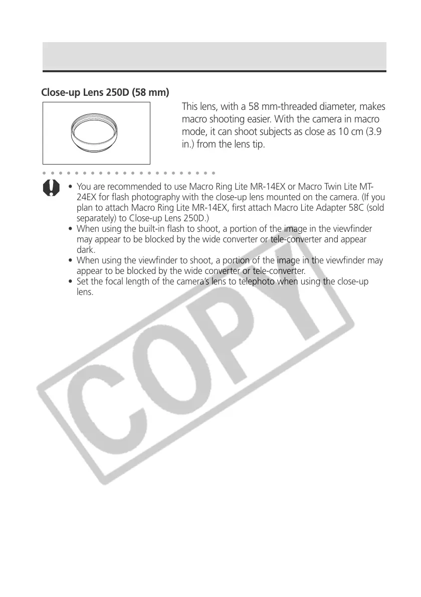 24EX for flash photography with the close-up lens mounted on the camera. (If you