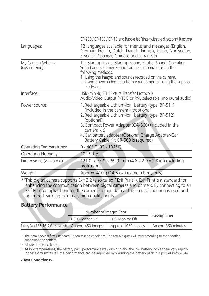 The data above reflects standard Canon testing conditions. The actual figures will vary according to the shooting
