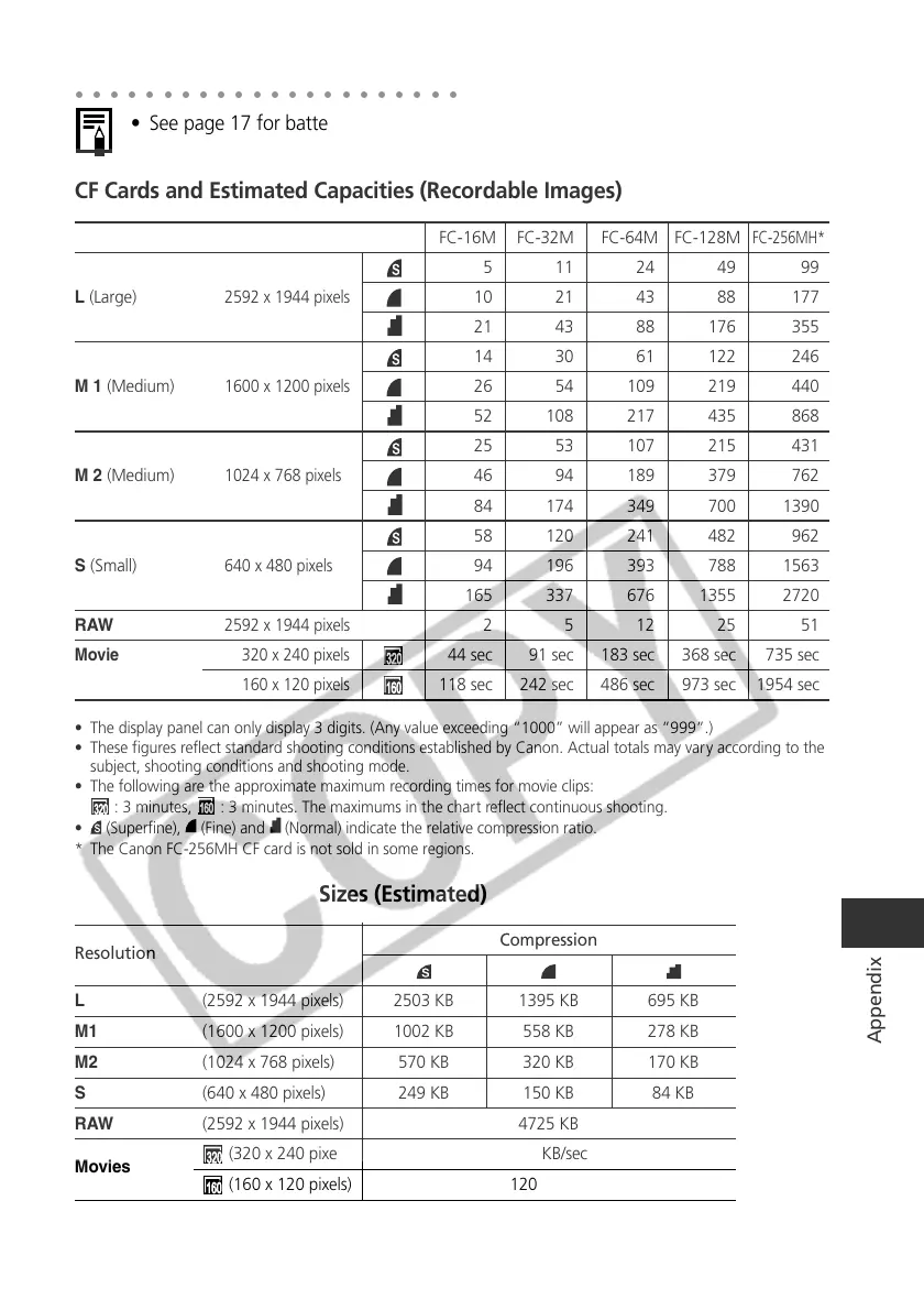 • These figures reflect standard shooting conditions established by Canon. Actual totals may vary according to the