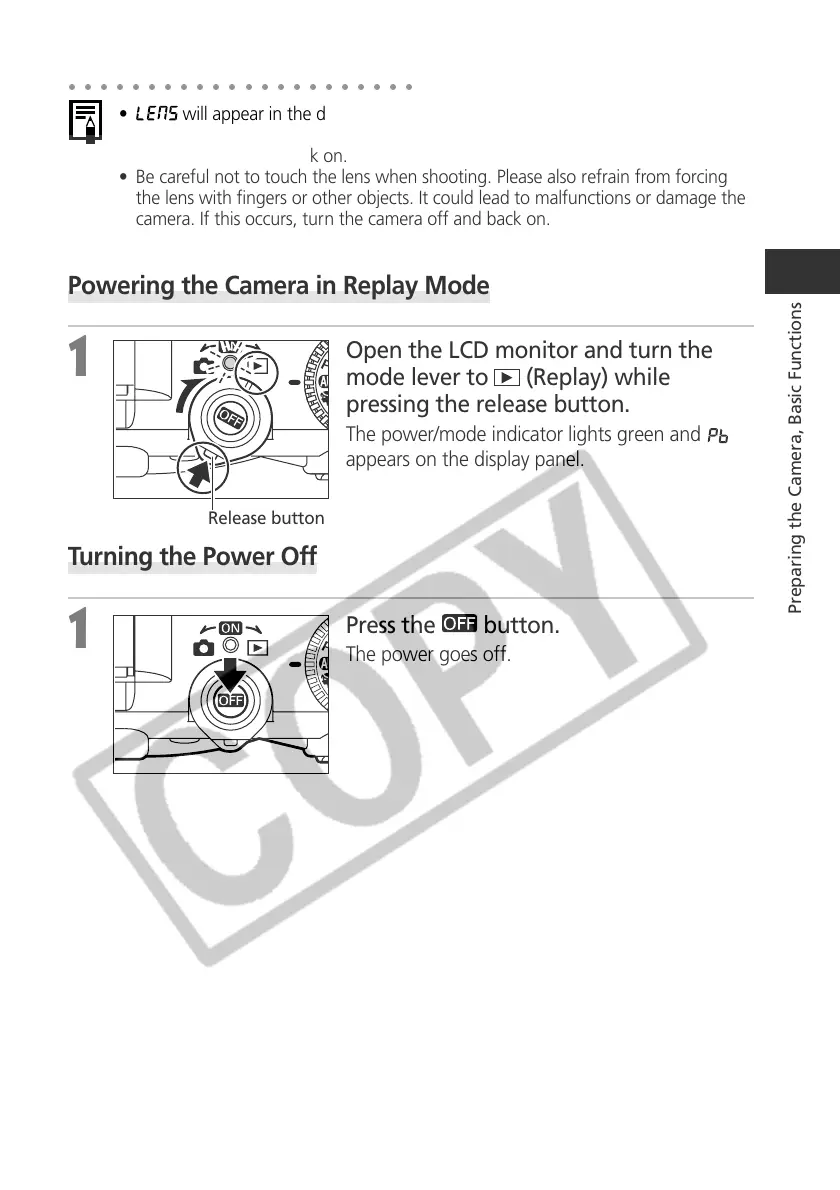 on the camera with the lens cap on. If this occurs, remove the lens cap and turn